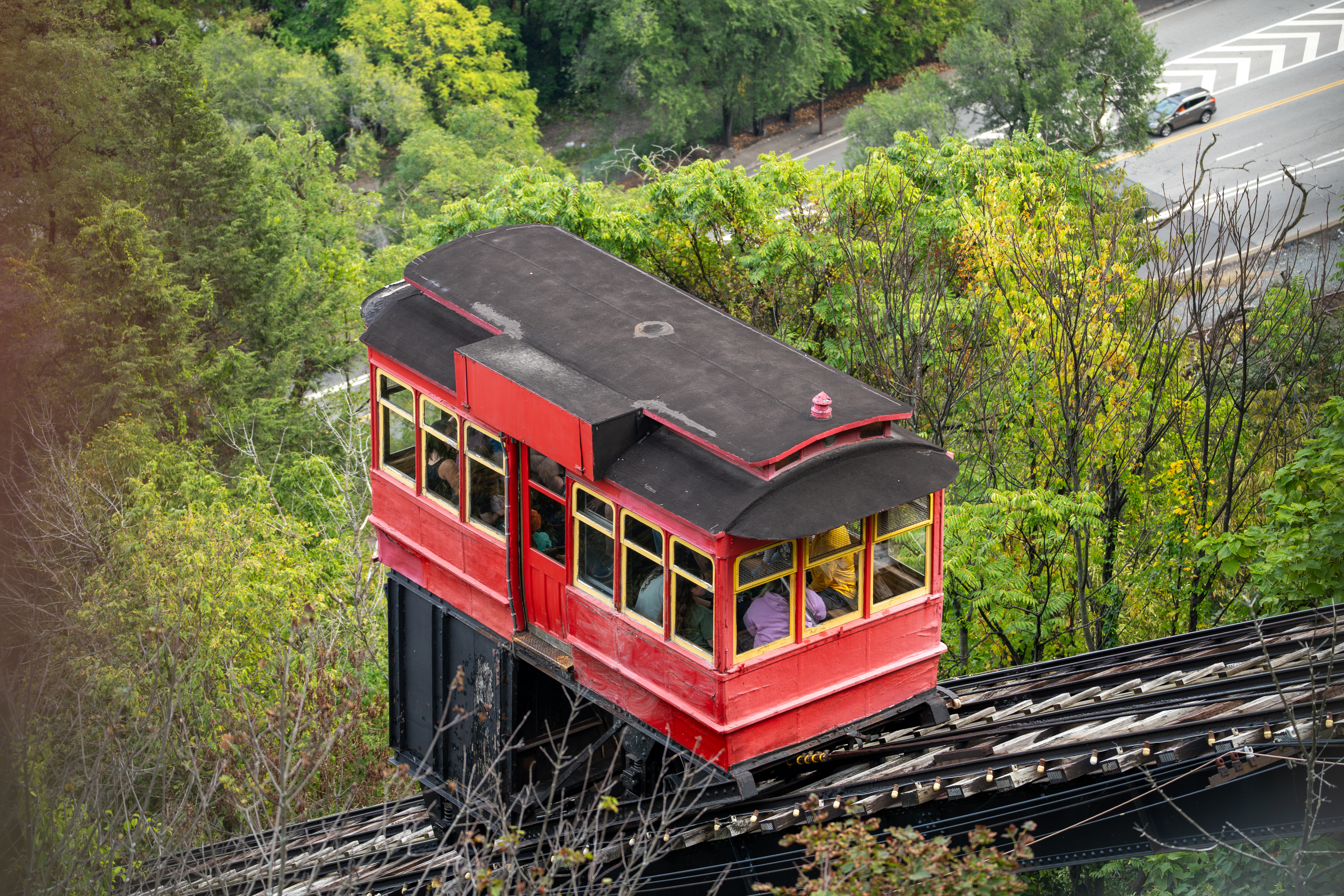 A historic cable car (funicular) up Mount Washington with one of the most iconic views of the Pittsburgh skyline. Don't miss the Golden Triangle at sunset.